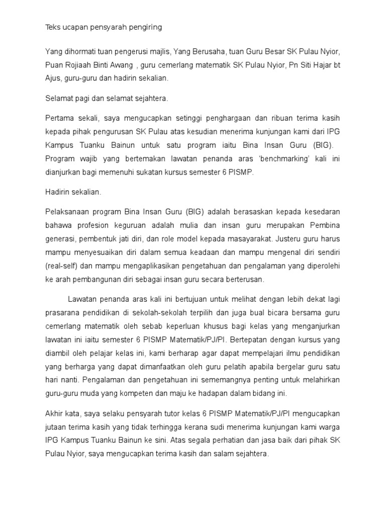 Teks Ucapan Pengacara Majlis Bahasa Melayu Pengurusan Pejabat Uitm Studocu