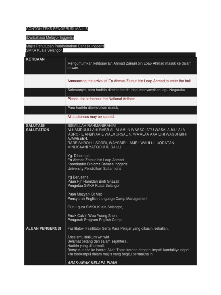 Contoh Teks Pengerusi Majlis Dwibahasa Pdf