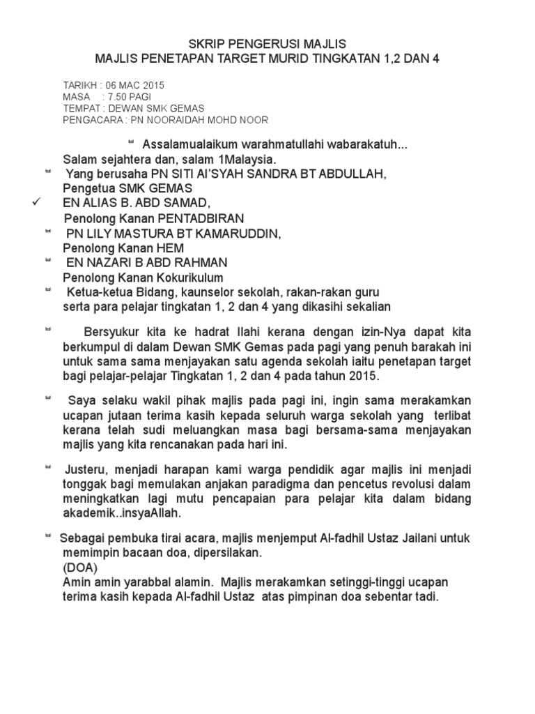 Doc Skrip Pengacara Perhimpunan Rasmi English Version Nurfarah Zawani Academia Edu